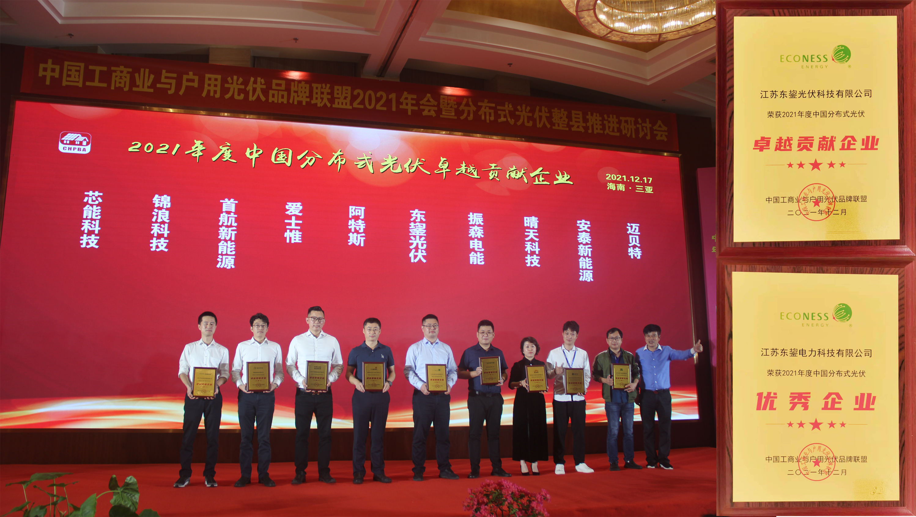 東鋆光伏榮獲2021年度中國分布式光伏卓越貢獻企業獎